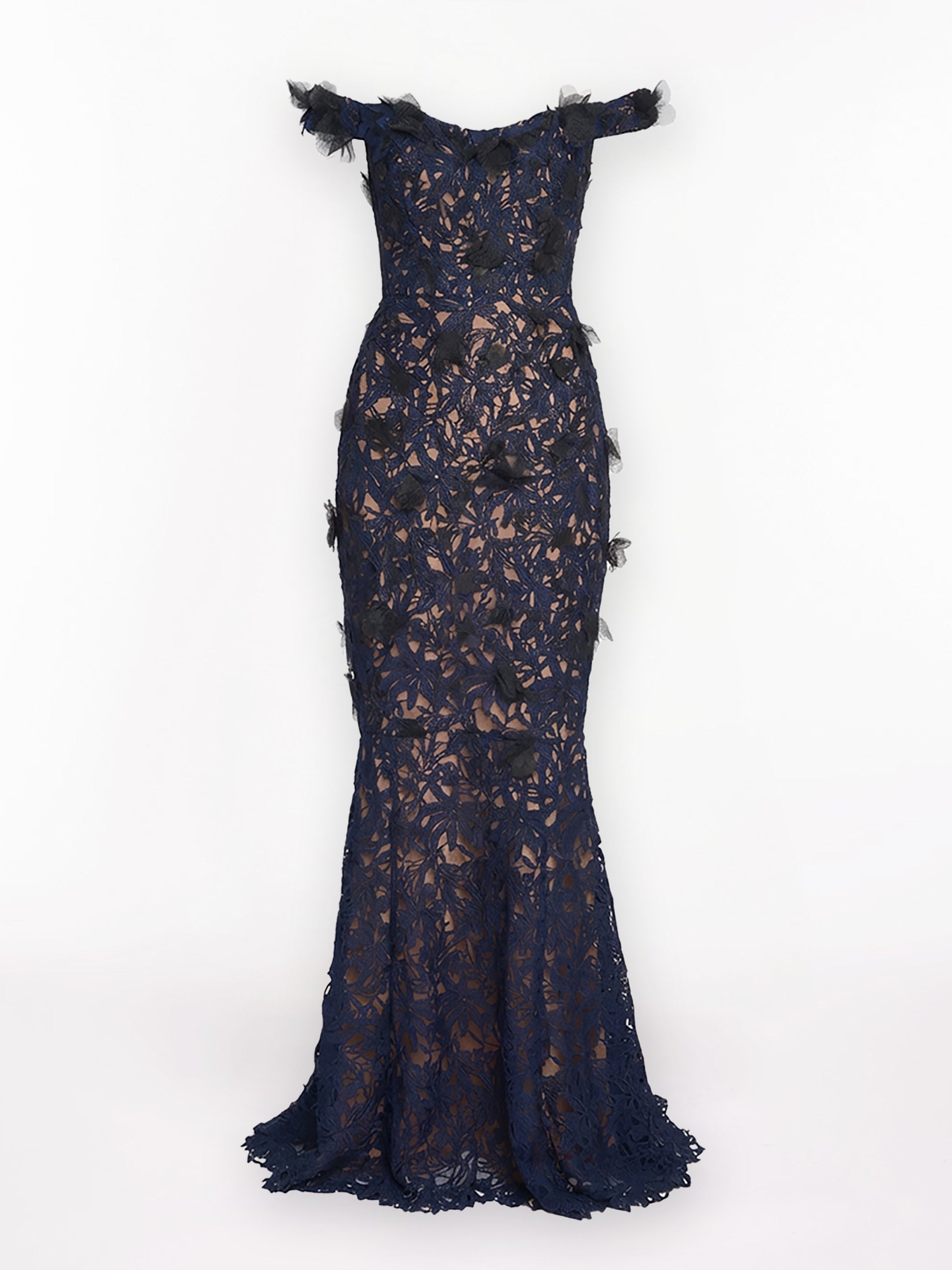 Guipure Lace Off Shoulder Gown