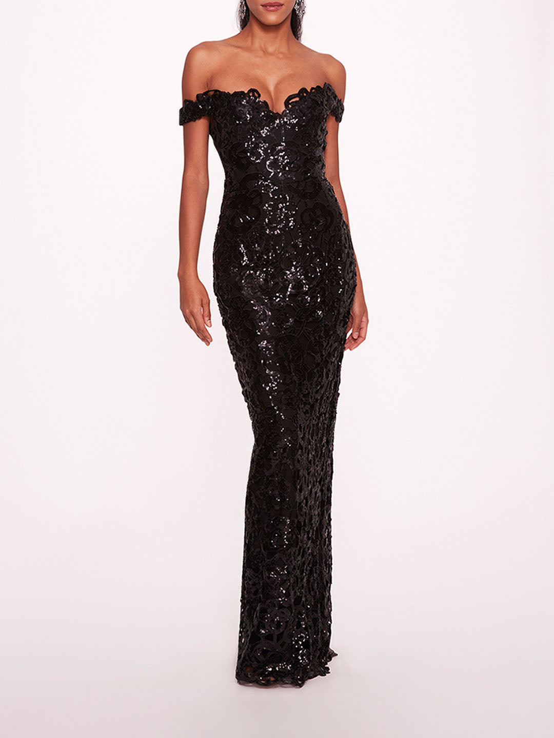 Off Shoulder Neckline Sequin Gown – Marchesa