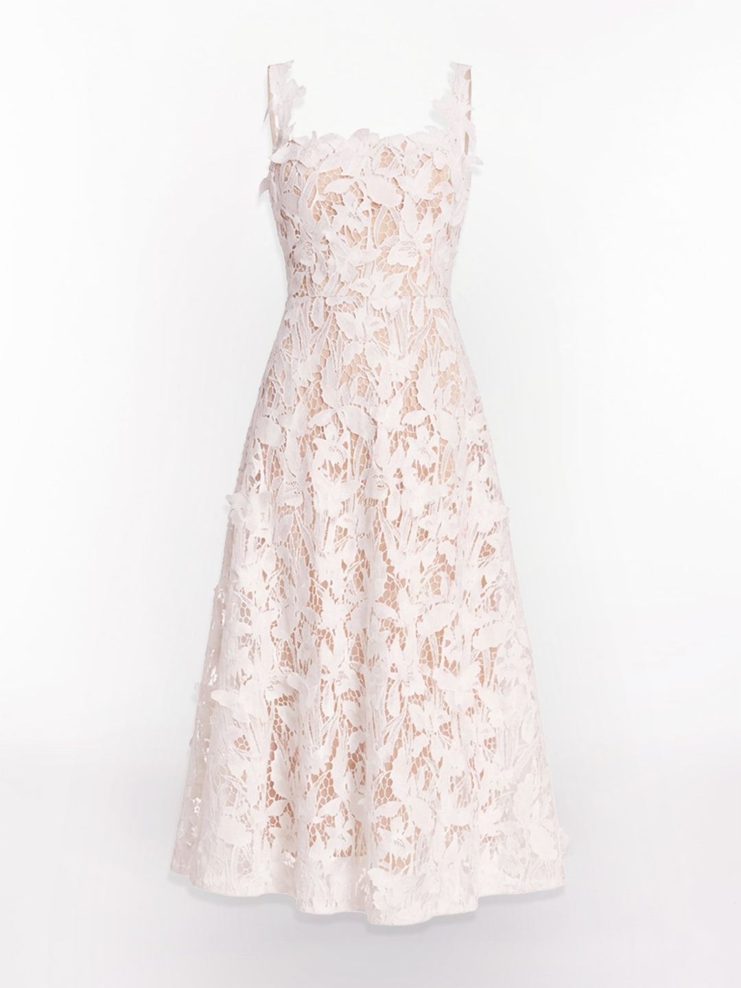 Lace Guipure Sleeveless A-line Midi Cocktail Dress