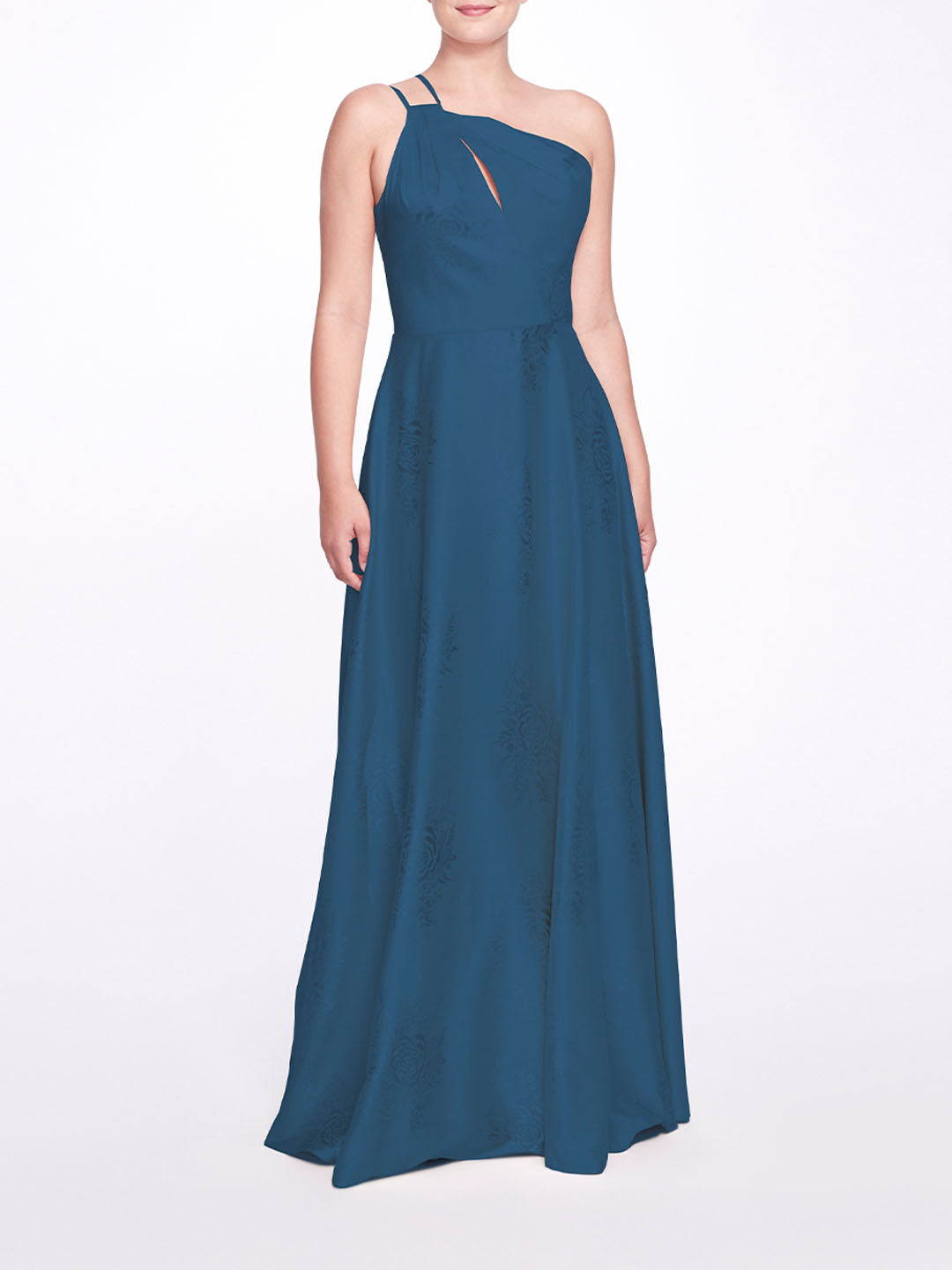 Carrara Floral Chiffon Key-Hole Halter Gown