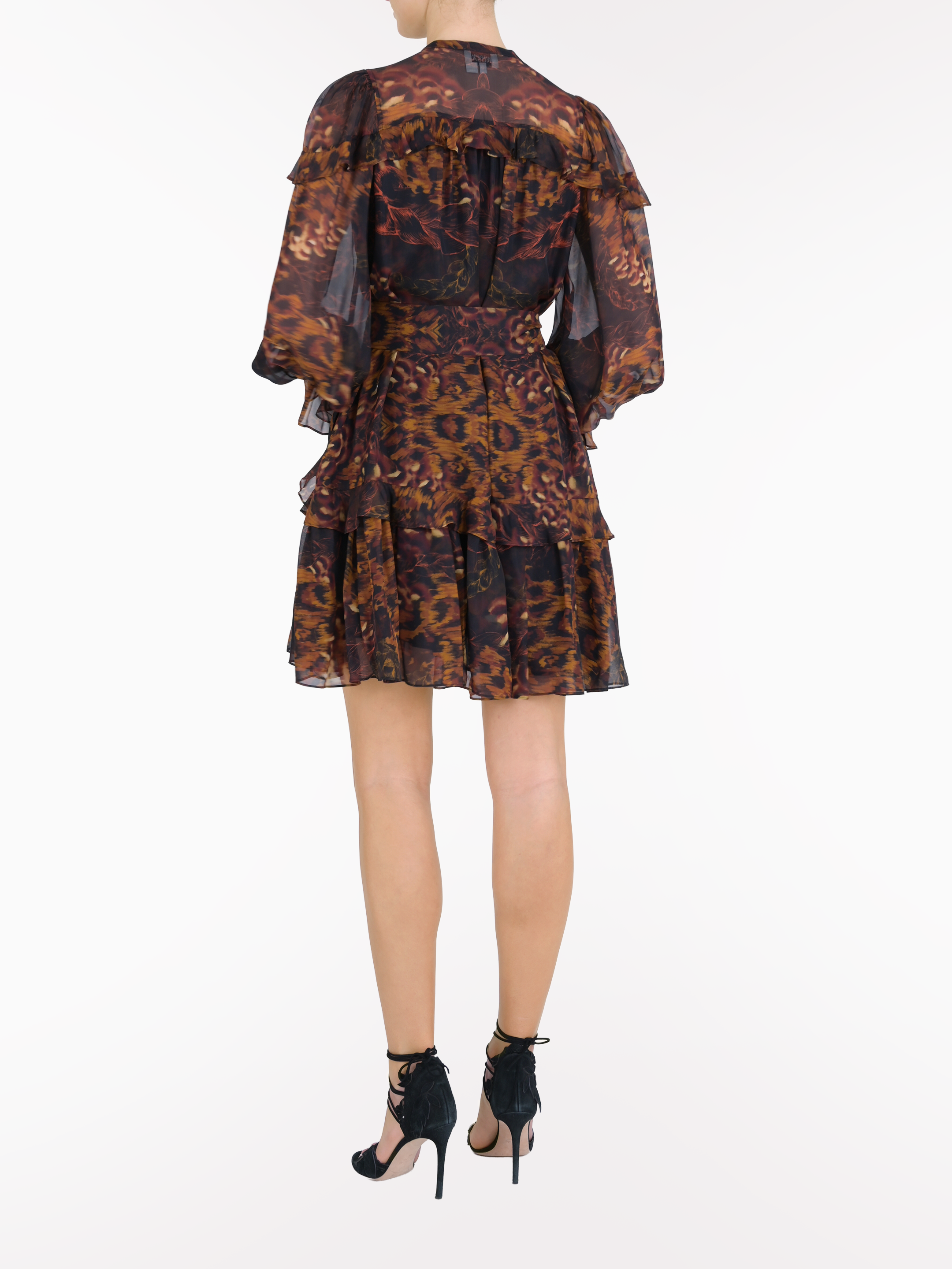 Braided Leopard Flounced Silk Chiffon Mini Dress