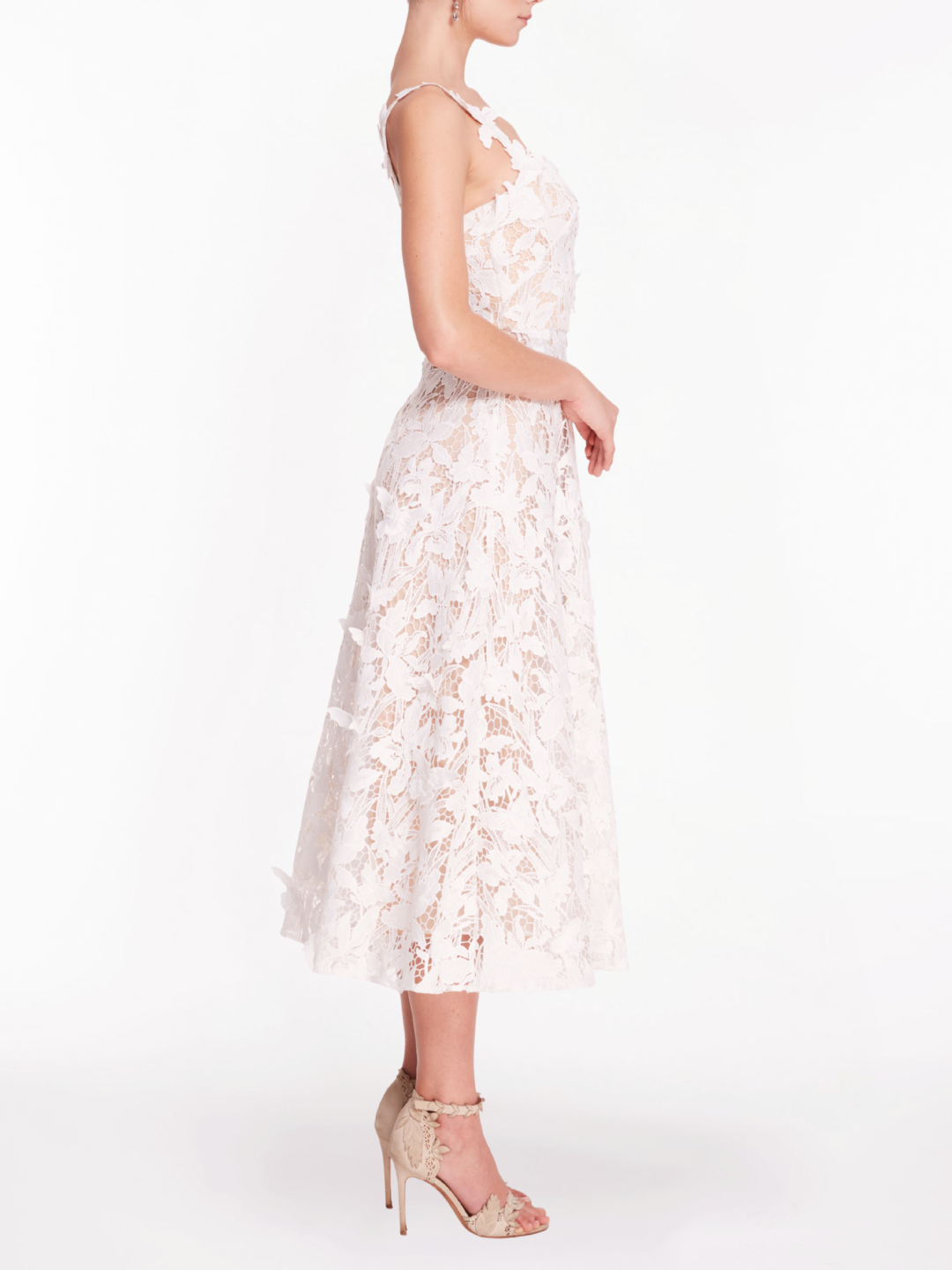 Lace Guipure Sleeveless A-line Midi Cocktail Dress