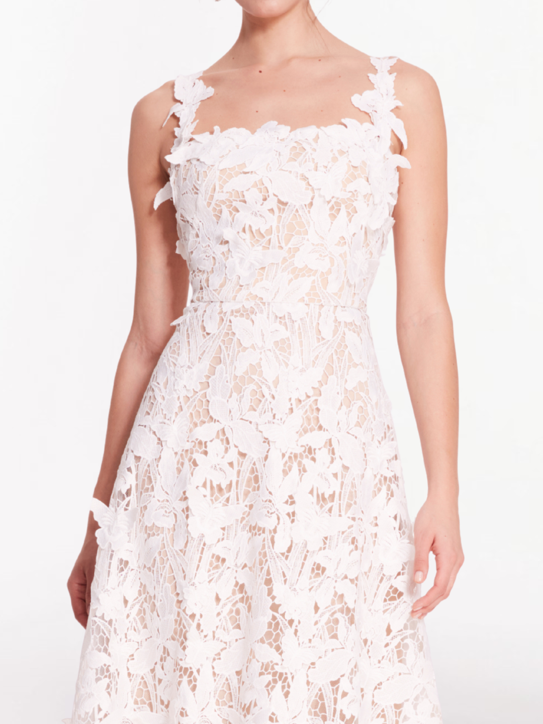 LACE GUIPURE SLEEVELESS A-LINE COCKTAIL WITH 3-D A
