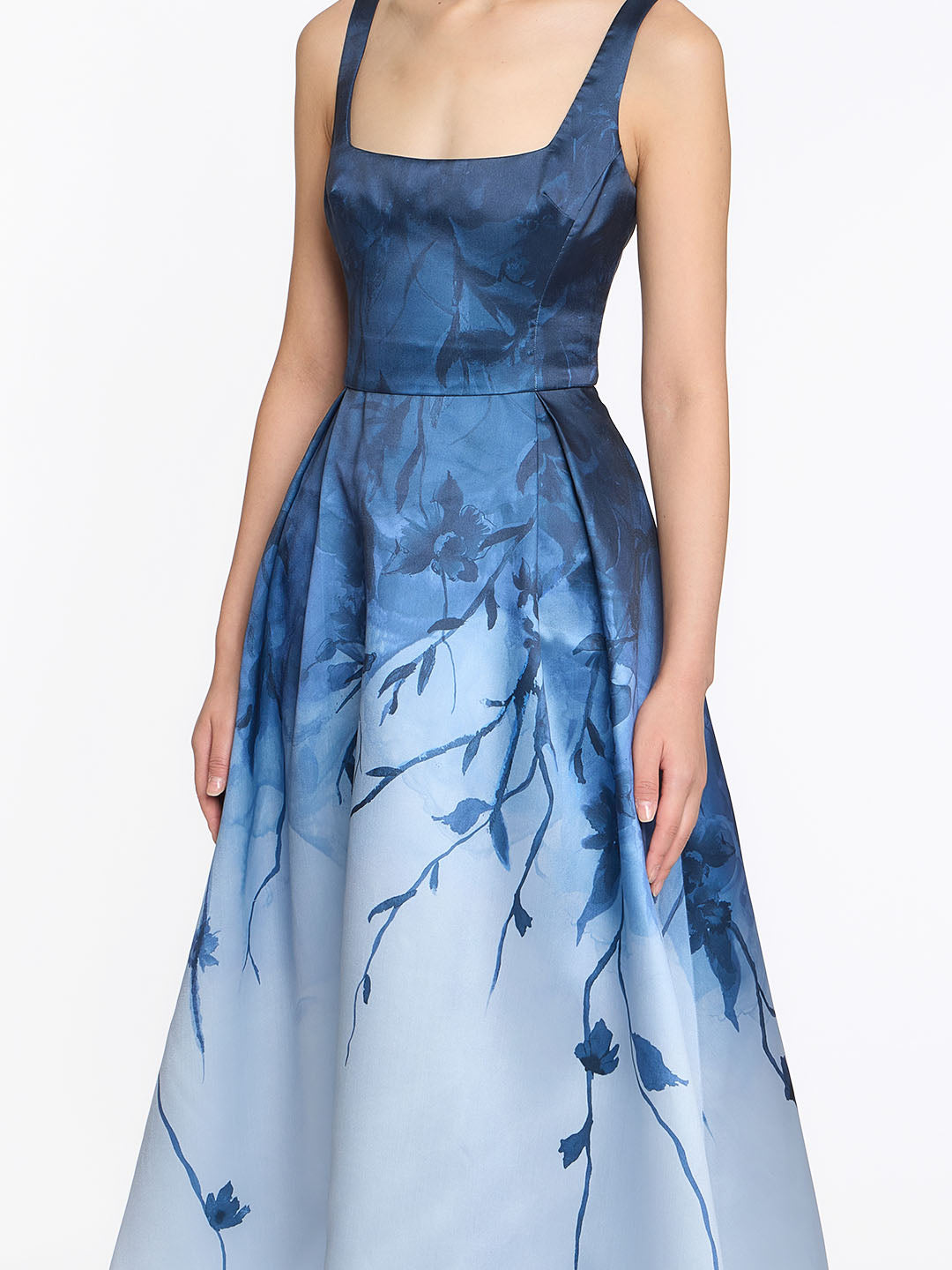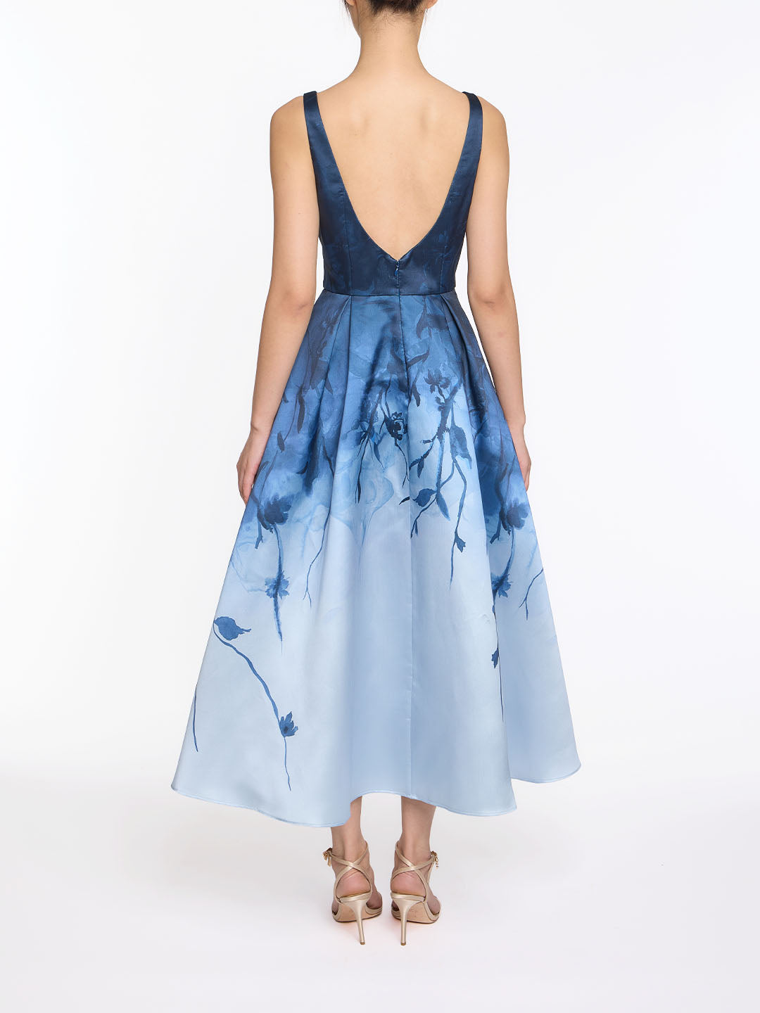 The Floral Printed Mikado Midi Dress combines the tailored nature of Mikado fabric with a elegant floral print. The sleeveless cocktail dress features an a-line silhouette and square neckline, complete with a romantic deep v-shaped back detail.