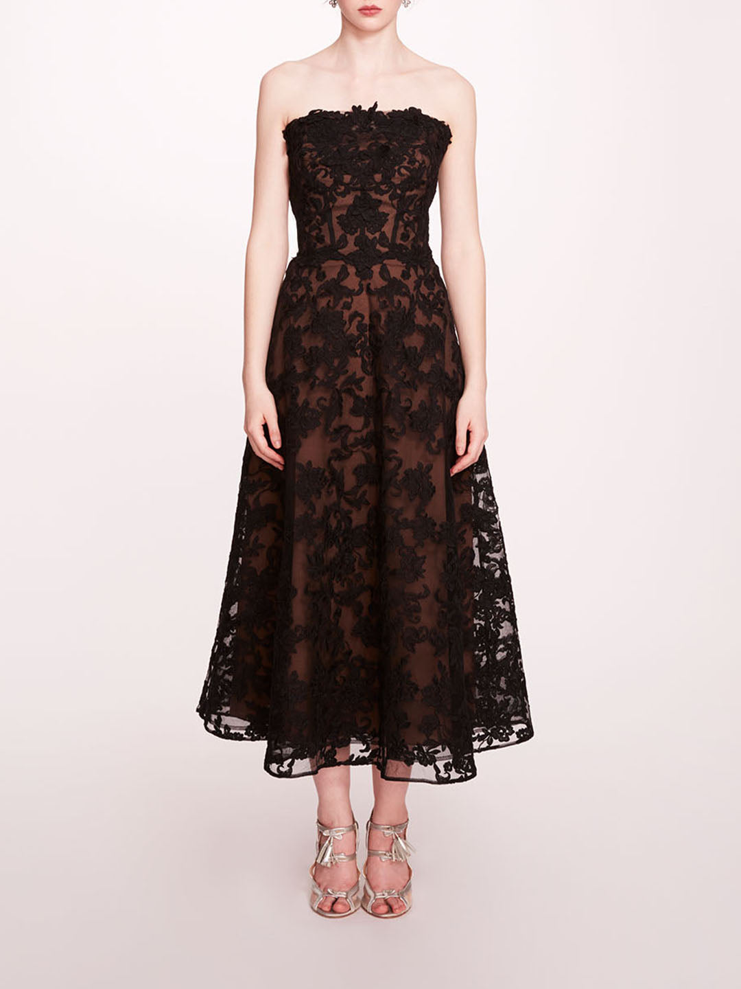 Embroidered Guipure V-neck Midi Cocktail Dress
