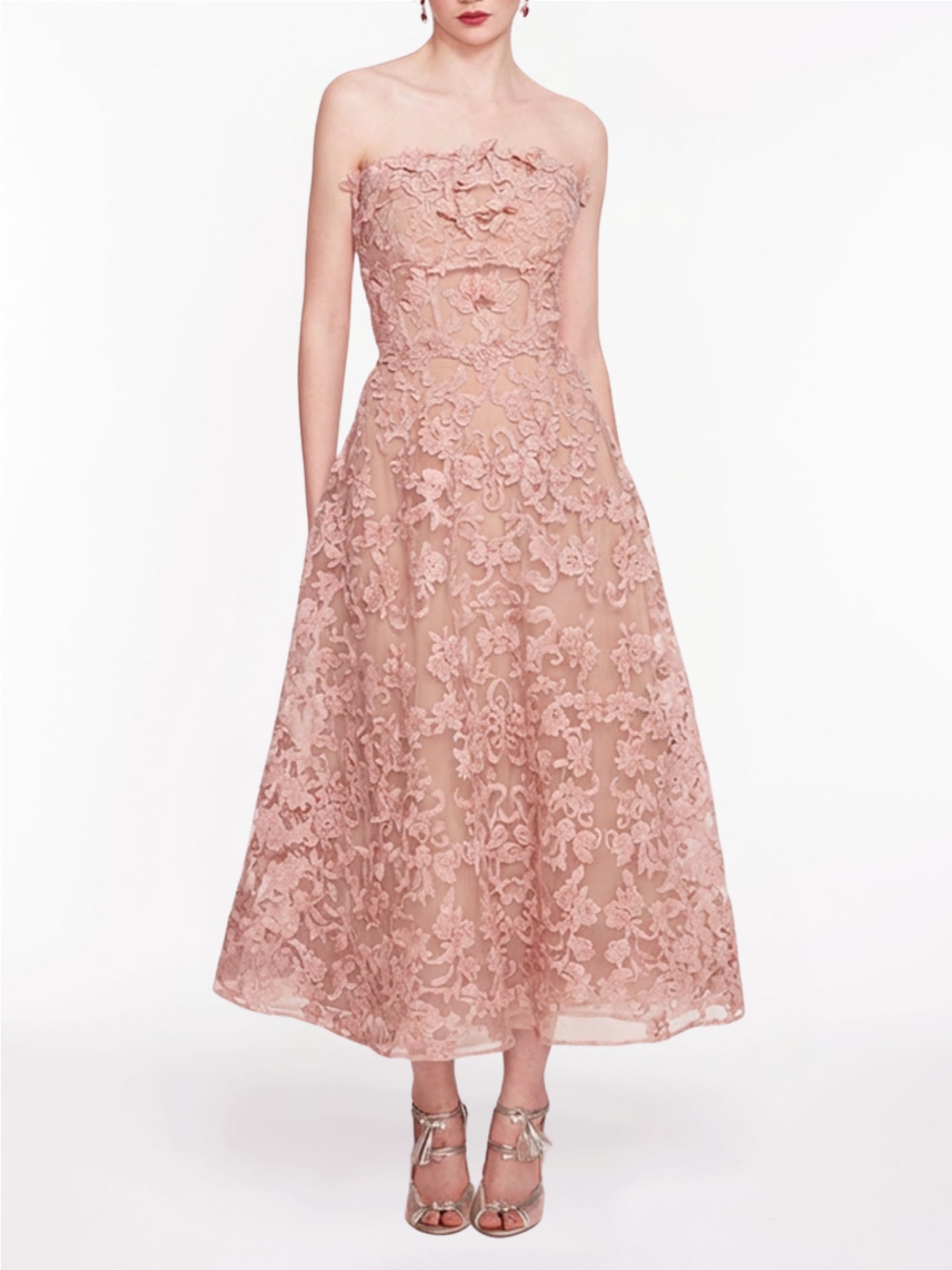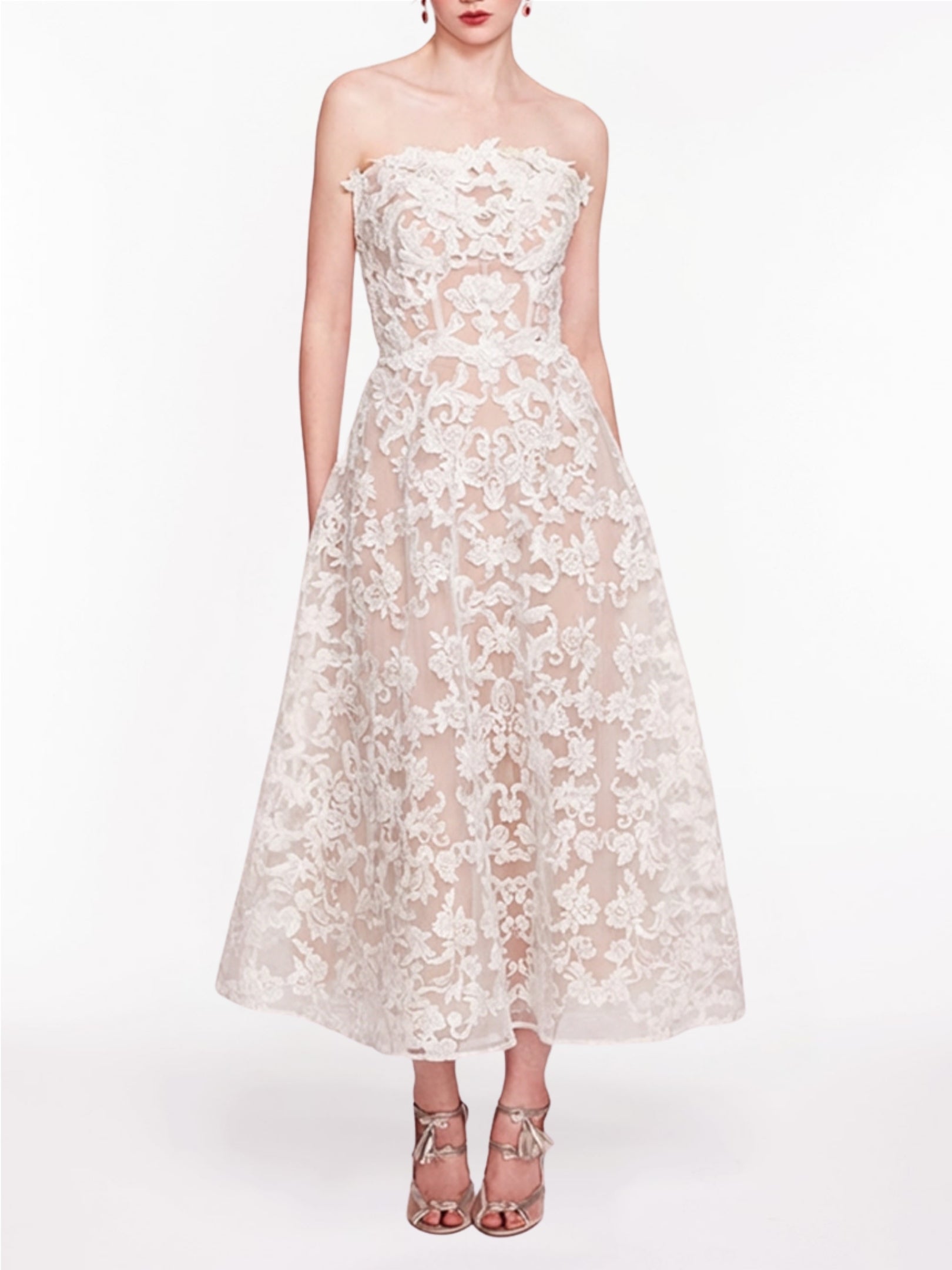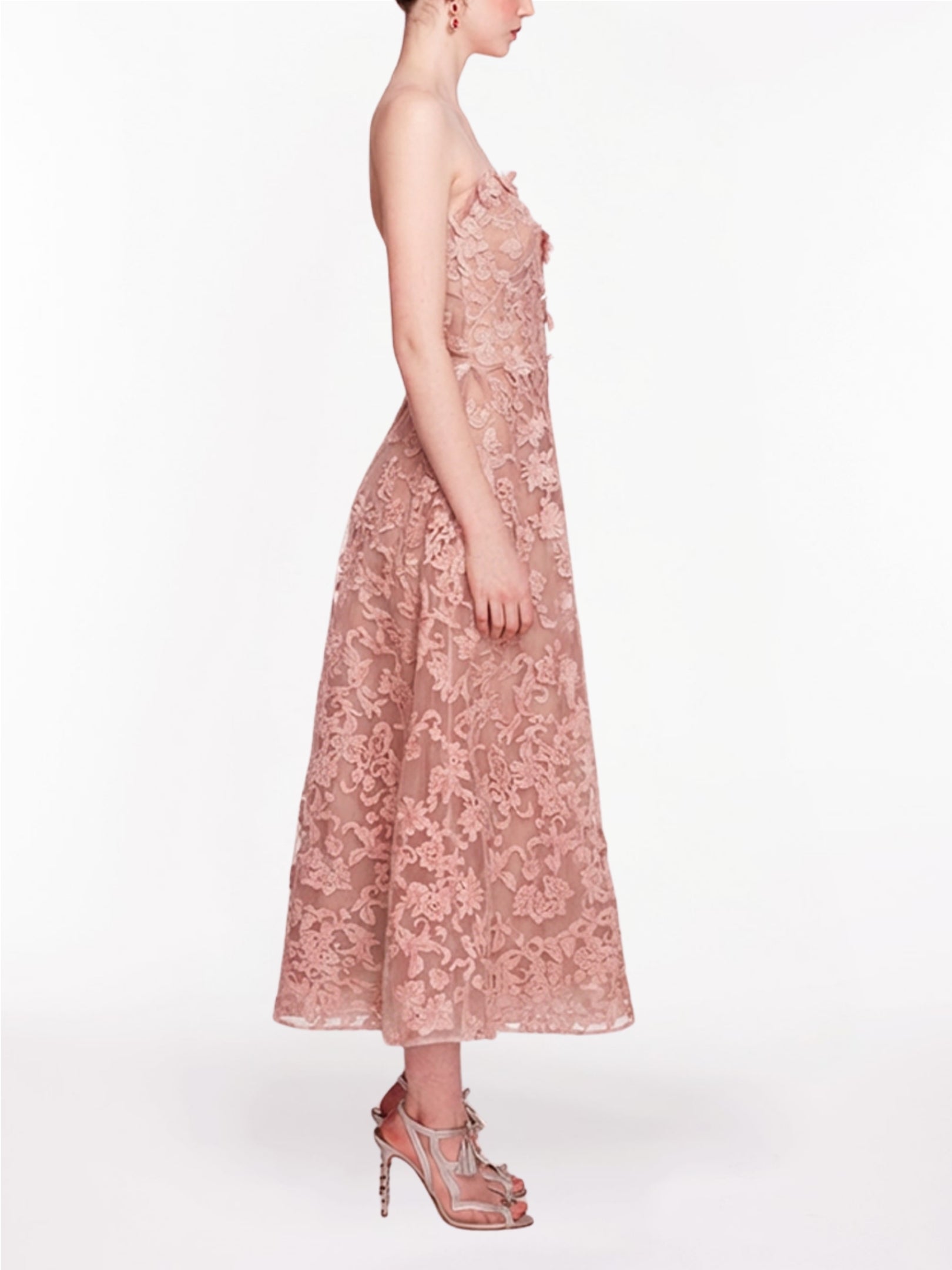 Embroidered Guipure V-neck Midi Cocktail Dress